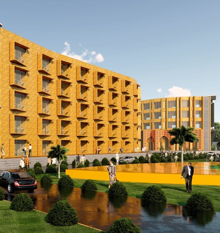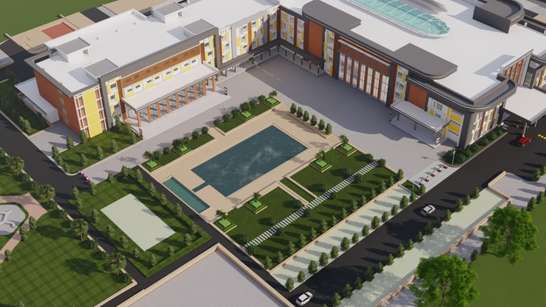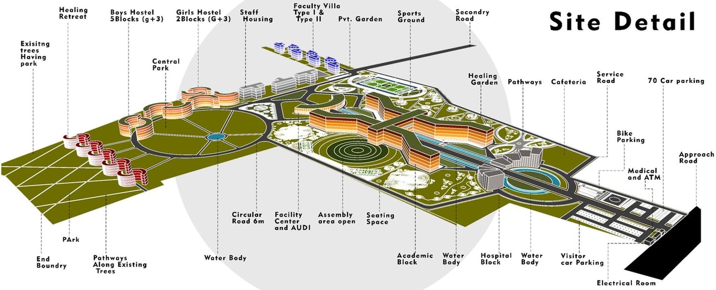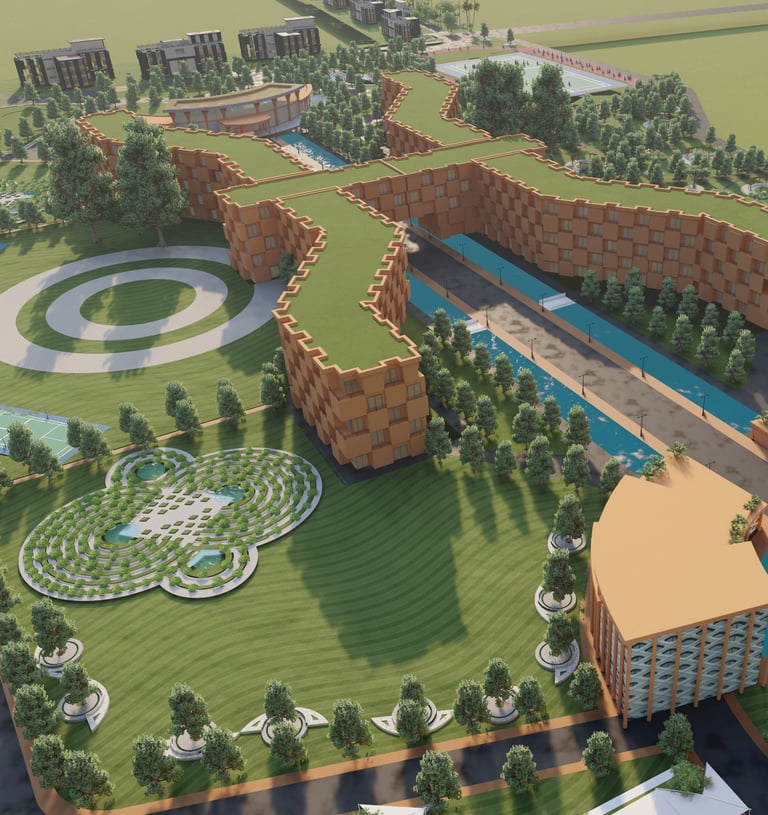 Ayush University in Ayodhya is envisioned as a state-of-the-art campus dedicated to holistic education, healthcare, and research in traditional and modern sciences. The project focuses on creating an eco-friendly, student-centric environment that promotes innovation, wellness, and cultural values, while establishing Ayodhya as a national hub for knowledge, healing, and sustainable development.