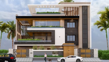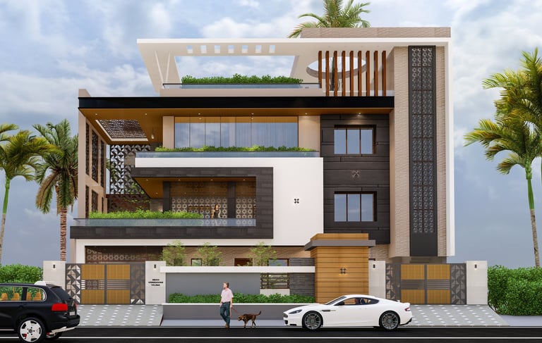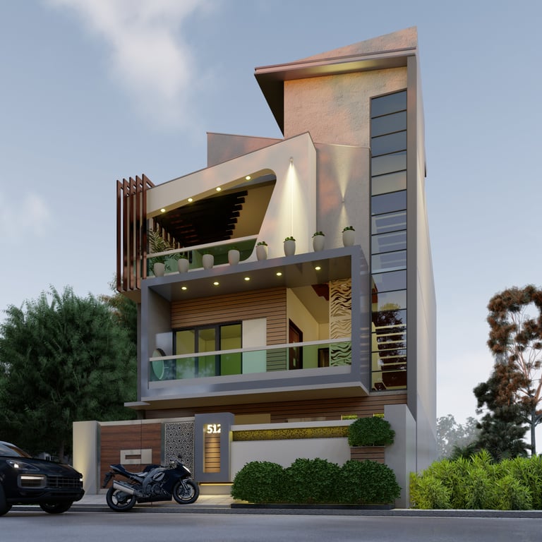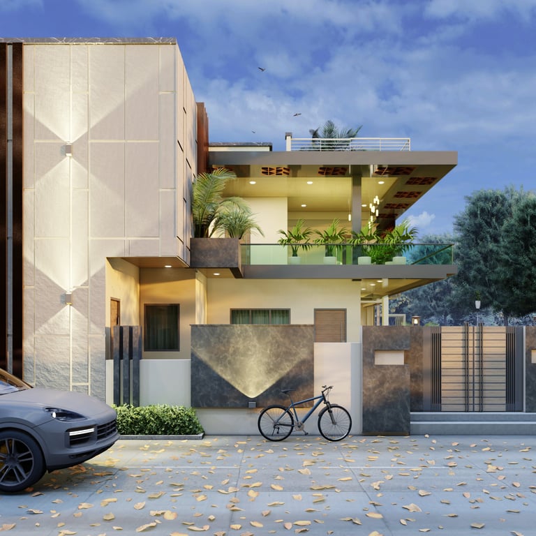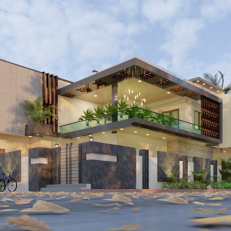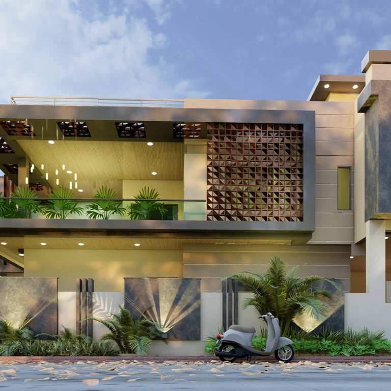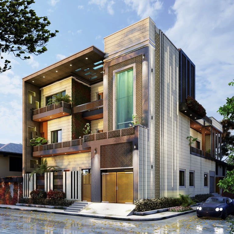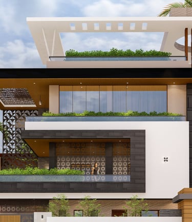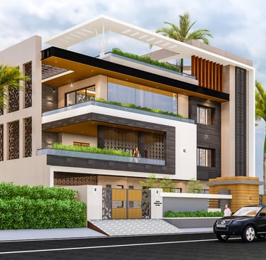 This residence in Lucknow, spread across 3,200 sq.ft., is envisioned as a modern home that reflects both luxury and practicality. The client’s expectation was to have a bold, contemporary design that offers privacy, comfort, and ample open spaces for family interaction.