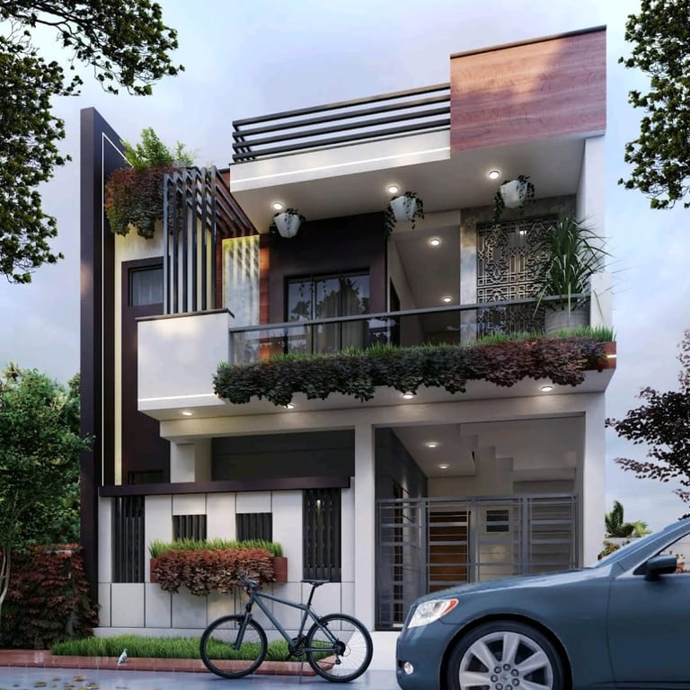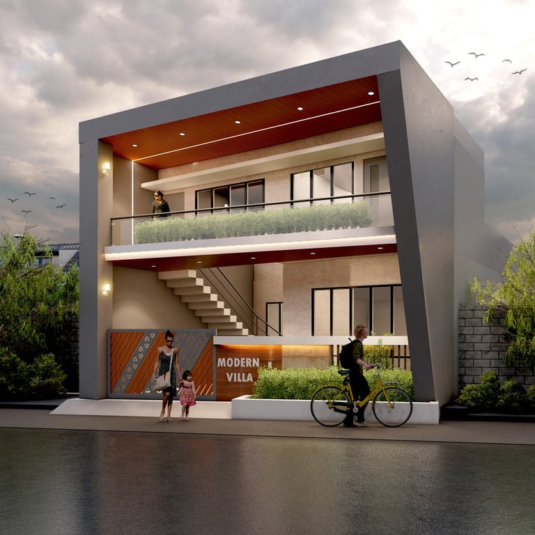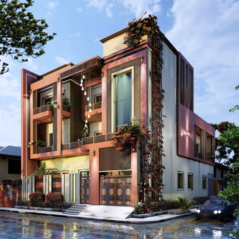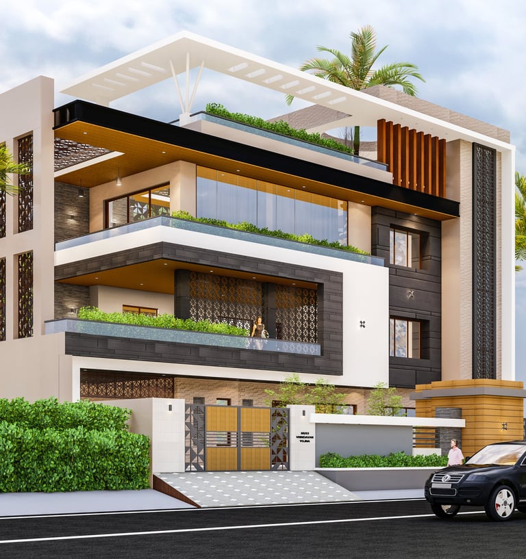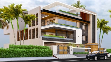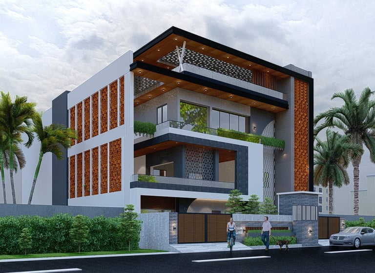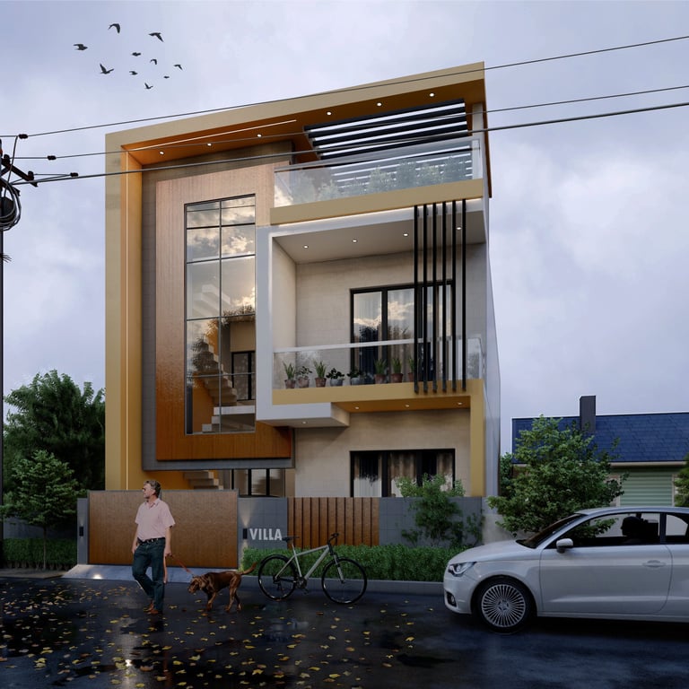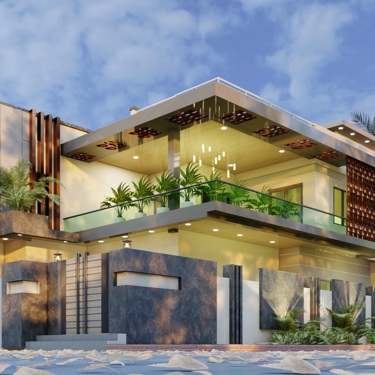 This residence in Lucknow, spread across 3,200 sq.ft., is envisioned as a modern home that reflects both luxury and practicality. The client’s expectation was to have a bold, contemporary design that offers privacy, comfort, and ample open spaces for family interaction.