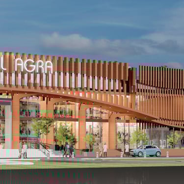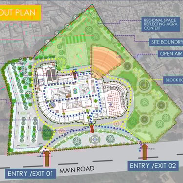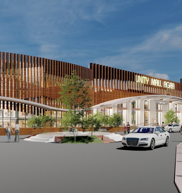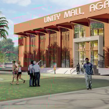 The Unity Mall project in Agra, Uttar Pradesh is a proposed commercial and cultural hub designed to integrate shopping, entertainment, and regional identity in one space. Strategically located with access to existing road networks and surrounded by both open green spaces and built-up areas, the project emphasizes a balance between modern retail facilities and the cultural context of Agra.