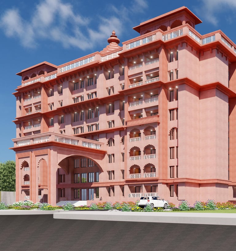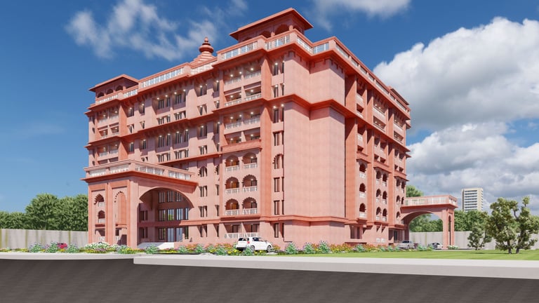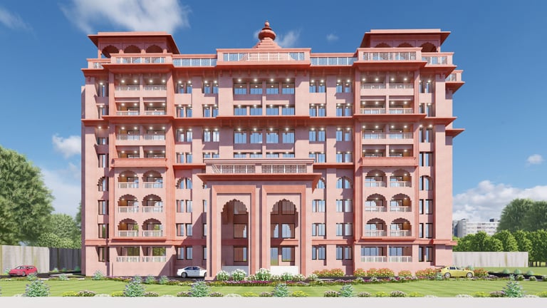 Symbolic Meaning: The Swastika is not used in its corrupted 20th-century context but is reclaimed as its original Hindu symbol of "good luck, prosperity, and auspiciousness." The design aims to imbue the entire complex with these positive attributes.