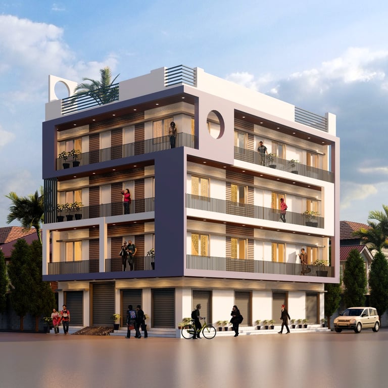 The Niwas Housing Project is a group housing development strategically located near Vishwavidyalaya Metro Station in Lucknow, ensuring excellent connectivity with educational institutions, commercial hubs, and public transit. The site spans 16,178 sq.m (approximately 4 acres) with a planned built-up area of 24,268 sq.m, designed in compliance with urban development by-laws. The project comprises well-planned 2BHK and 3BHK residential blocks, each designed with principles of cross-ventilation, natural lighting, and climate-responsive architecture.